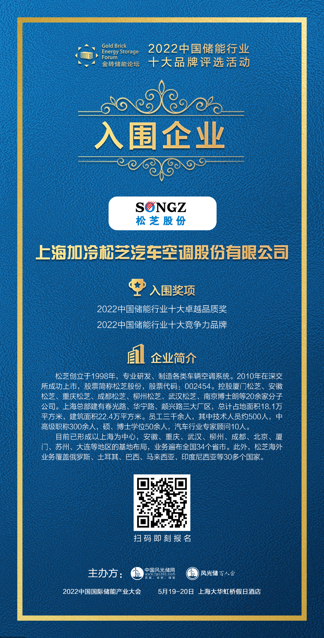 2022中国储能行业十大品牌评选运动,由中国景物储网主理,以公正、公正、果真的原则,全力打造中国最具影响力和招呼力的品牌评选运动,评选效果将于5月在中国国际储能工业大会上盛大揭晓。
