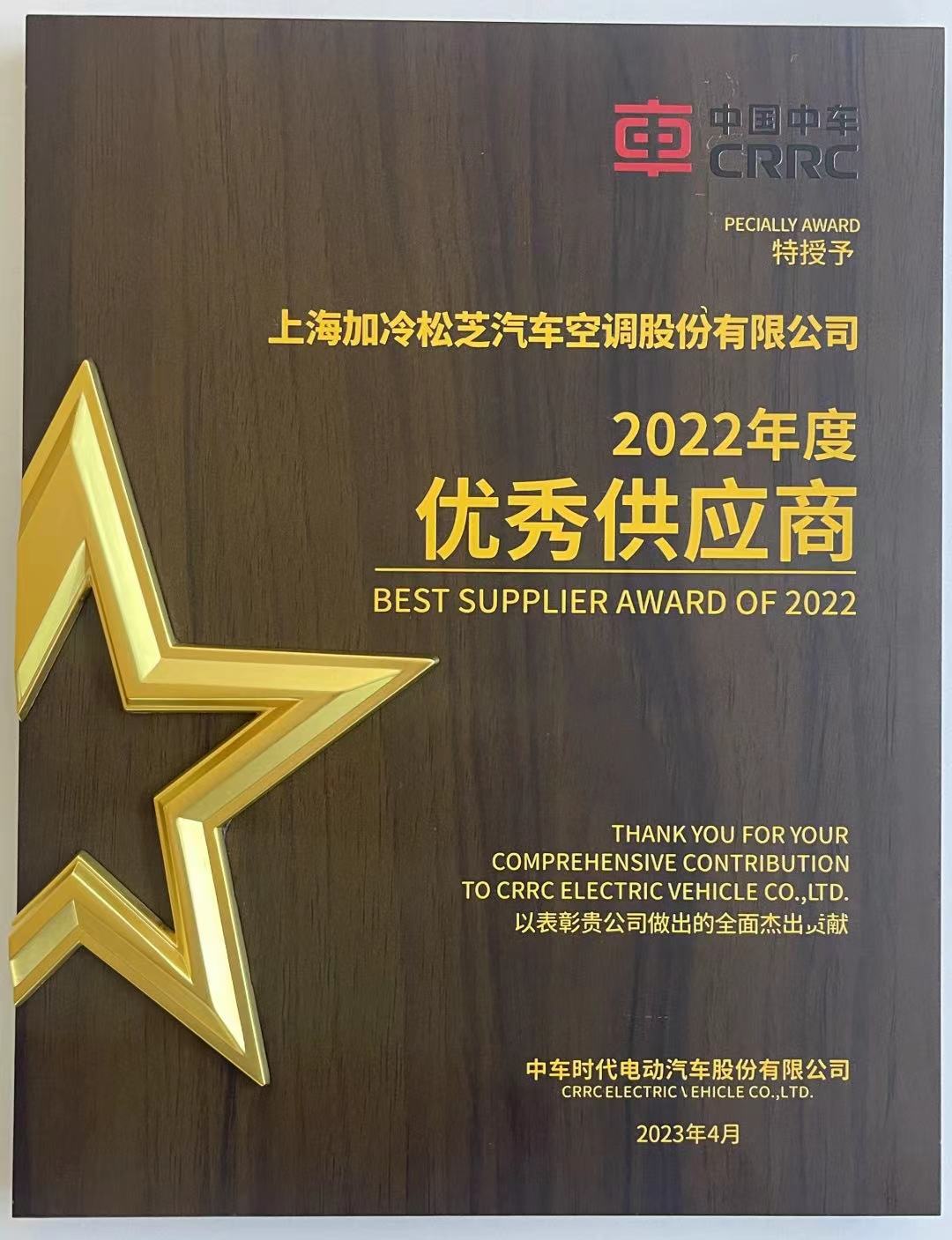 ×ðÁú¿Ê±¹É·ÝÈÙ»ñÖгµÊ±´úµç¶¯Æû³µ¹É·ÝÓÐÏÞ¹«Ë¾ÊÚÓè¡°2022Äê¶ÈÓÅÒ칩ӦÉÌ¡±
