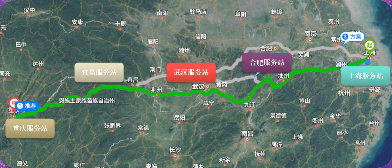 ÒÔÉϺ£µ½ÖØÇìΪ°¸Àý£ºÔ˾àÈ«³Ì1700¹«ÀվµãÊýÄ¿ÉèÖÃ5¸ö£» Õ¾Ãû£ºÉϺ£/ºÏ·Ê/Î人/Ò˲ý/ÖØÇ죬·øÉä°ë¾¶£º200¹«Àï
